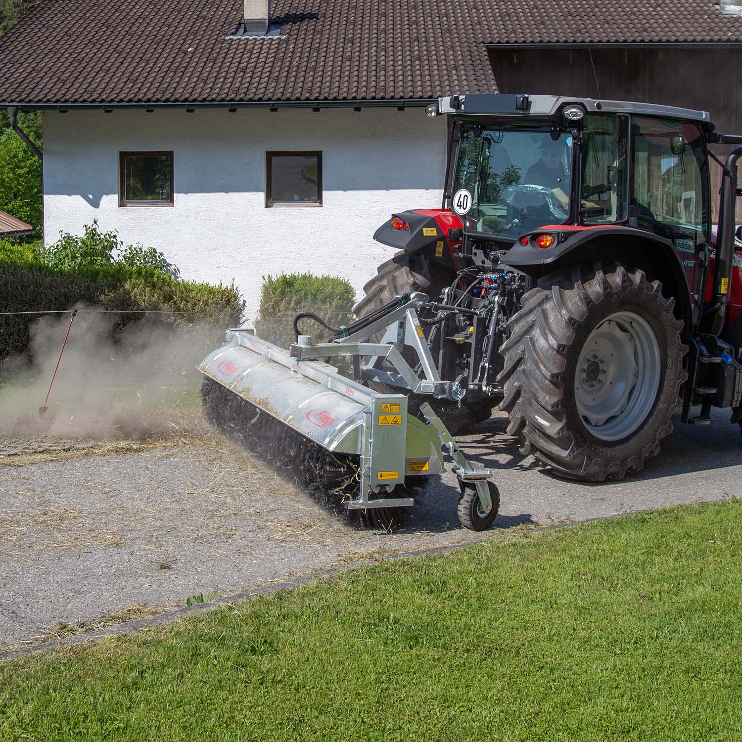 La balayeuse type 700 possède, comme son nom l'indique, un grand rouleau de balayage avec des balais de 700 mm dont les différents segments de disque sont coudés. On obtient ainsi un profil en nid d'abeille qui donne des résultats de balayage encore meilleurs, car la balayeuse ne se déplace pas seulement en ligne droite vers l'avant, mais aussi vers la droite et vers la gauche. Cela a bien sûr l'avantage d'obtenir un meilleur résultat de balayage pour les pierres d'os ou les pavés. La balayeuse est équipée d'un attelage trois points réglable hydrauliquement.