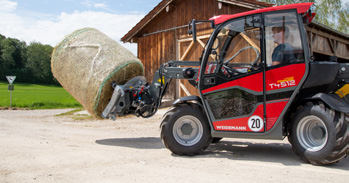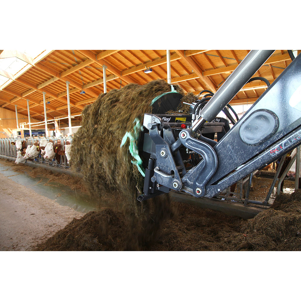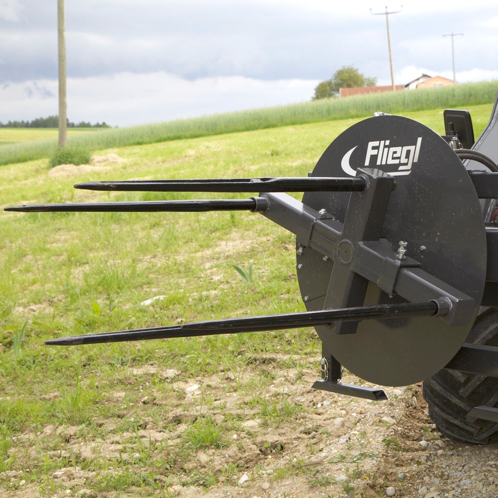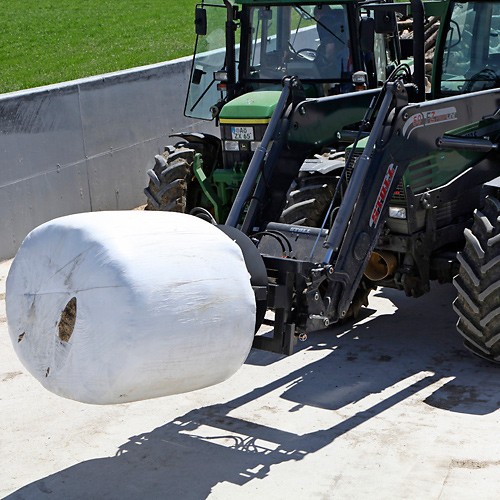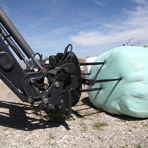 Déroulement simple et rapide des balles d'ensilage et de paille via l'hydraulique du tracteur – convient également au transport.