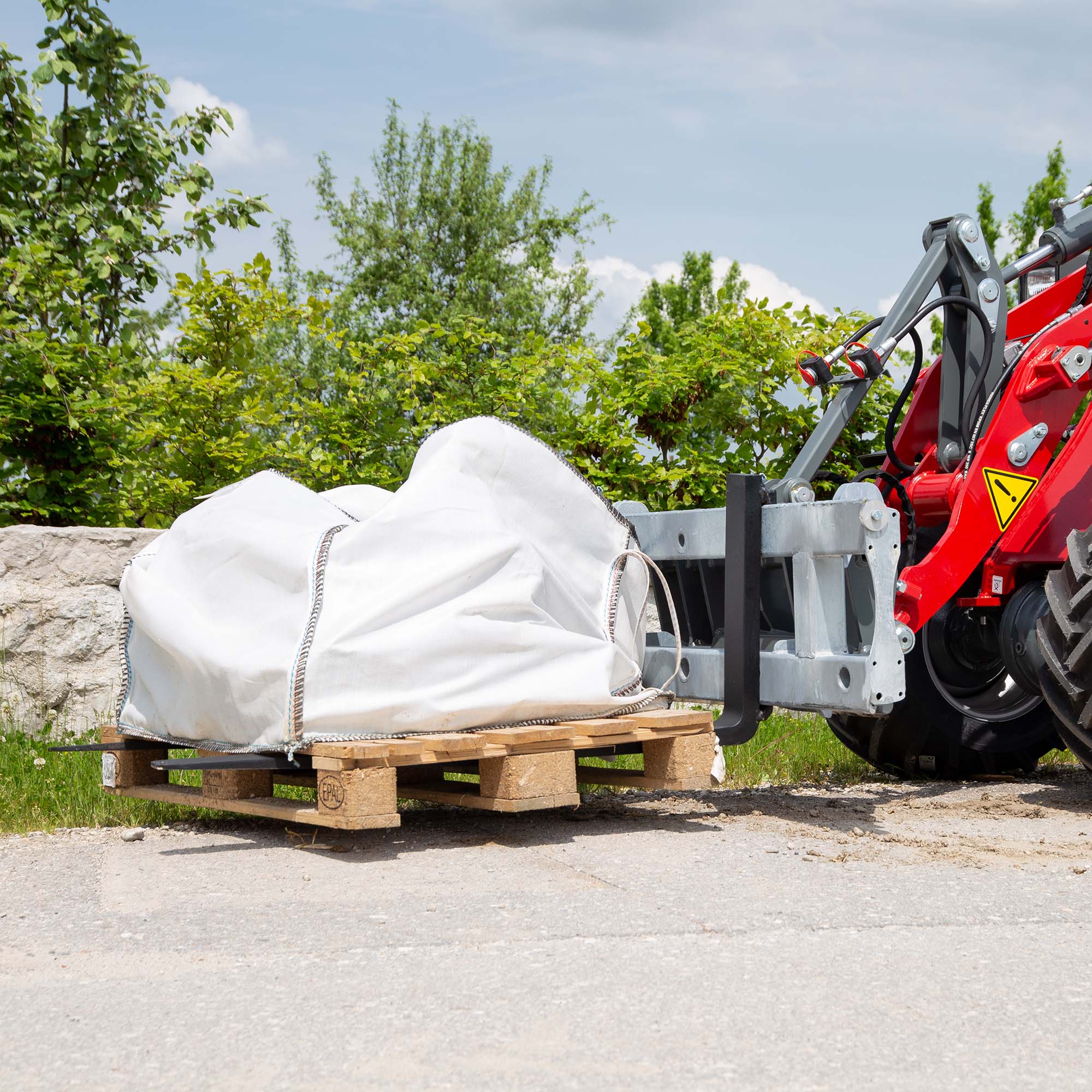 Contrairement aux fourches à palette traditionnelles, la « Freisicht » offre des possibilités d'utilisation supplémentaires, comme par exemple le transport de balles de foin grâce à l’attelage pour dents de balle ronde, disponible en option. Mais même pour le transport classique d'objets lourds, la « Freisicht » remplit parfaitement sa fonction dans sa version standard. En quelques minutes seulement, la fourche à palette peut être modifiée en fonction des exigences, ce qui n'est pas pour rien qu'elle est un appareil d’attelage très apprécié.