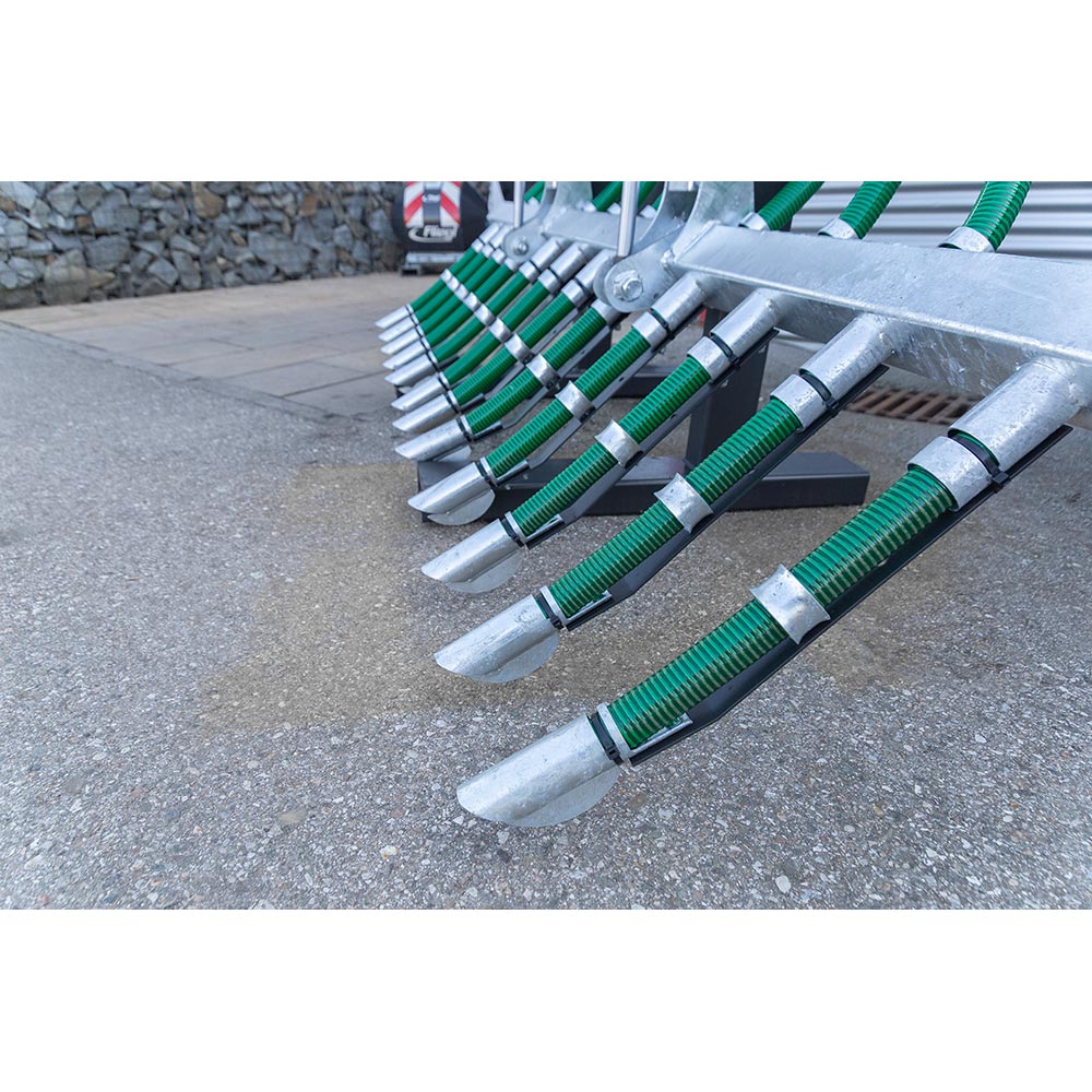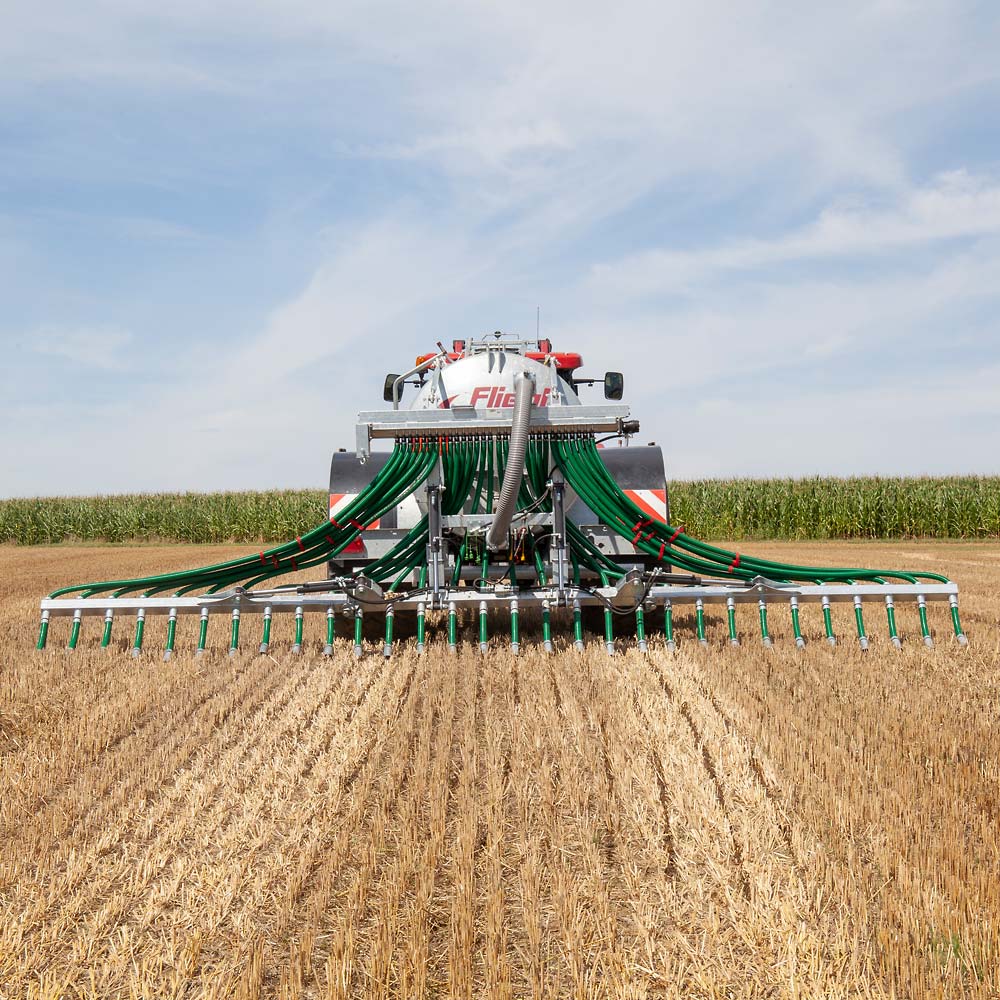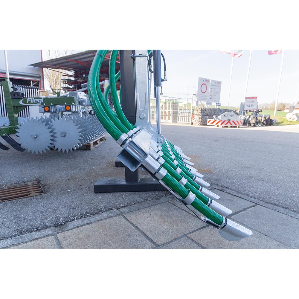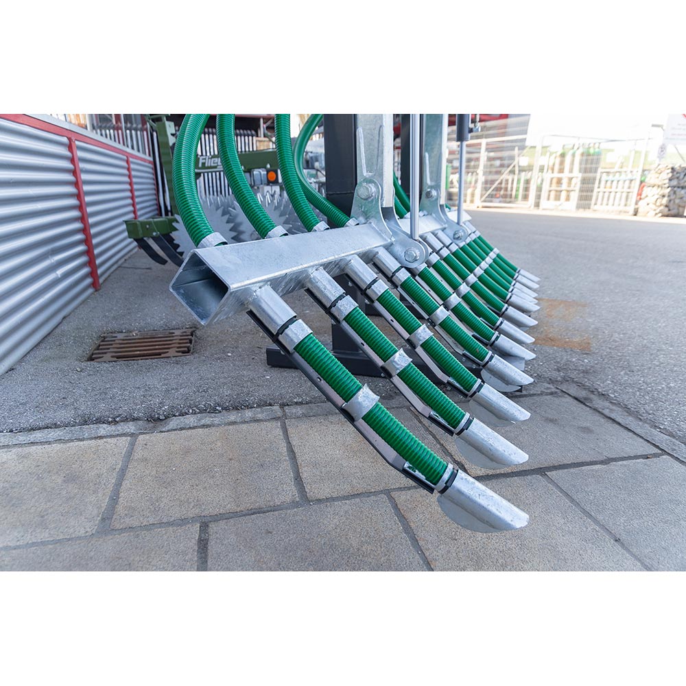 La solution de rééquipement universelle pour rampe avec des options supplémentaires spéciales – la rampe à patins « Compact » de Fliegl peut être facilement rééquipée sur chaque tonne à lisier et ce kit prémonté est opérationnel en quelques minutes. Le lisier est acheminé dans les tuyaux grâce à notre système de répartition à vis sans fin breveté FLIEGL. Le système de répartition à vis sans fin permet d’éviter tout phénomène de bouchage en acheminant les corps étrangers en bout de chaîne dans un bac pierre. Il permet également la bonne répartition du lisier sur toute la largeur de la rampe. La surface des champs n'étant pas toujours régulière, la rampe « Compact » possède une compensation de dévers intégrée. Grâce à leur forme coudée spéciale, les lames en acier flexible utilisées permettent de s'adapter parfaitement au sol et de garantir une pression uniforme sur tous les patins.