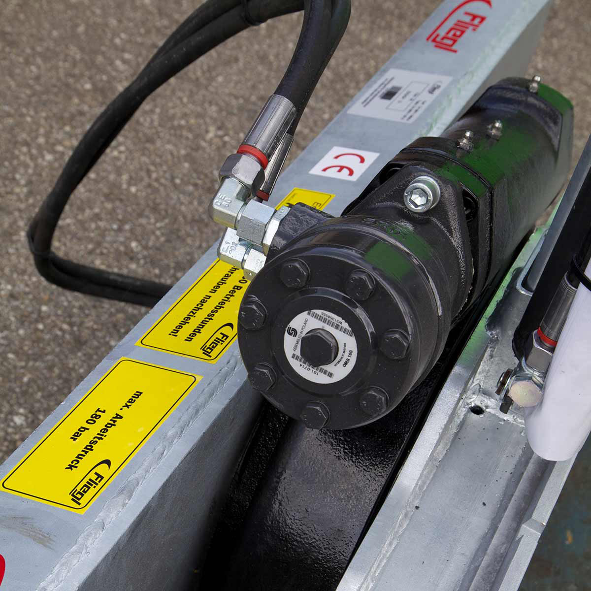 » Bras de maintien central en option, réglable hydrauliquement dans le sens vertical, qui dépasse du conteneur