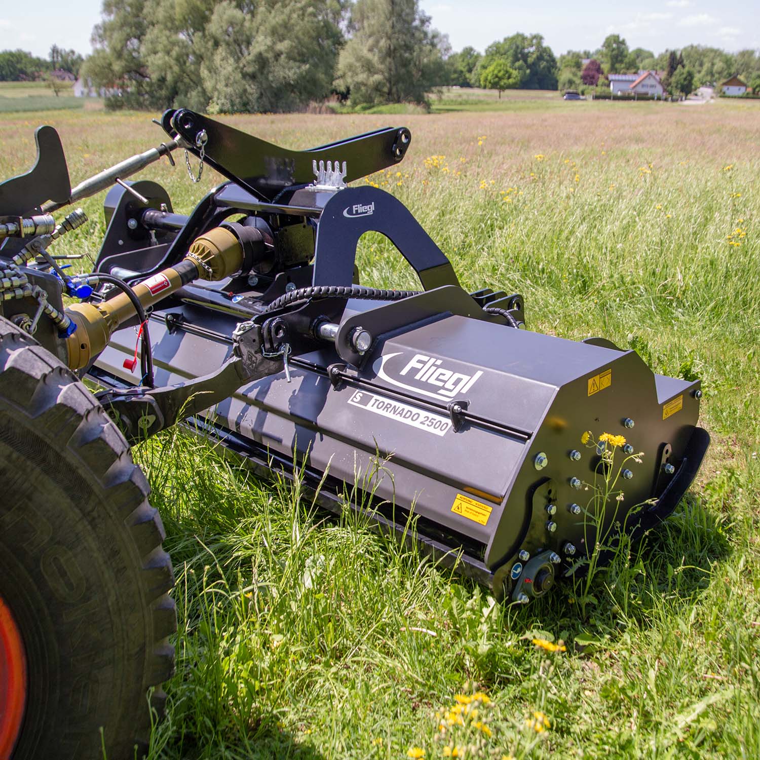Le broyeur à marteaux « Tornado » de Fliegl Agro-Center est prêt pour des utilisations exigeantes. Cette série de broyeurs est de fabrication particulièrement robuste et suit les standards de qualité les plus élevés. Ainsi, la coupe de l'herbe sur de grandes surfaces, le broyage des pousses et des tiges ainsi que la taille des résidus de coupe sont encore meilleurs et se font plus rapidement.