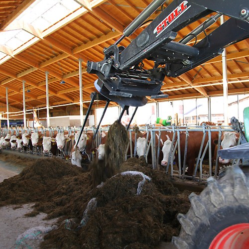 La dérouleuse de balles rondes est un outil petit mais très efficace pour dérouler rapidement et uniformément les balles rondes et pour distribuer les matériaux dans l’étable. La commande s’effectue confortablement depuis le tracteur, il n’est donc pas nécessaire de descendre. Saisir, porter, dérouler et distribuer en une seule opération – et c’est terminé !