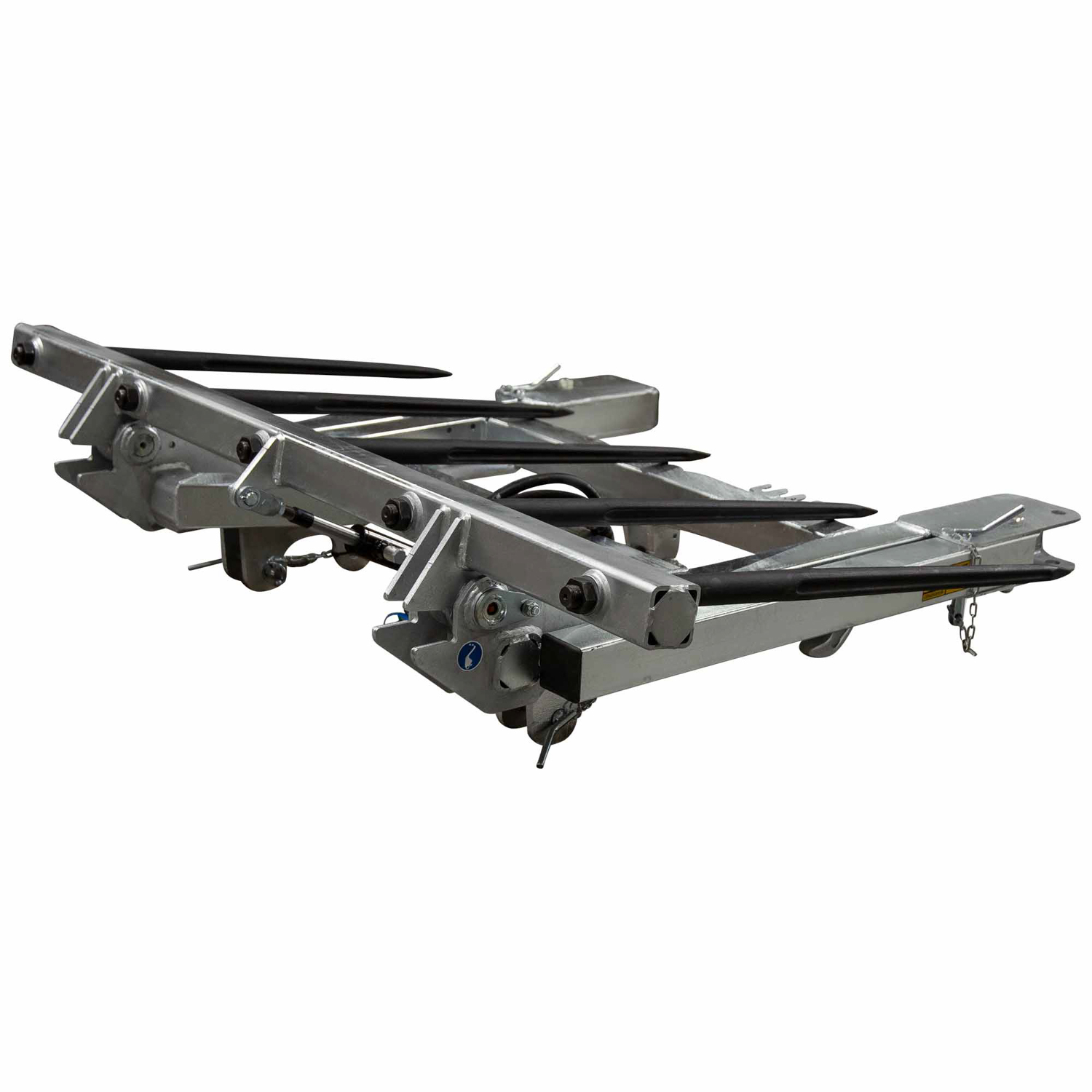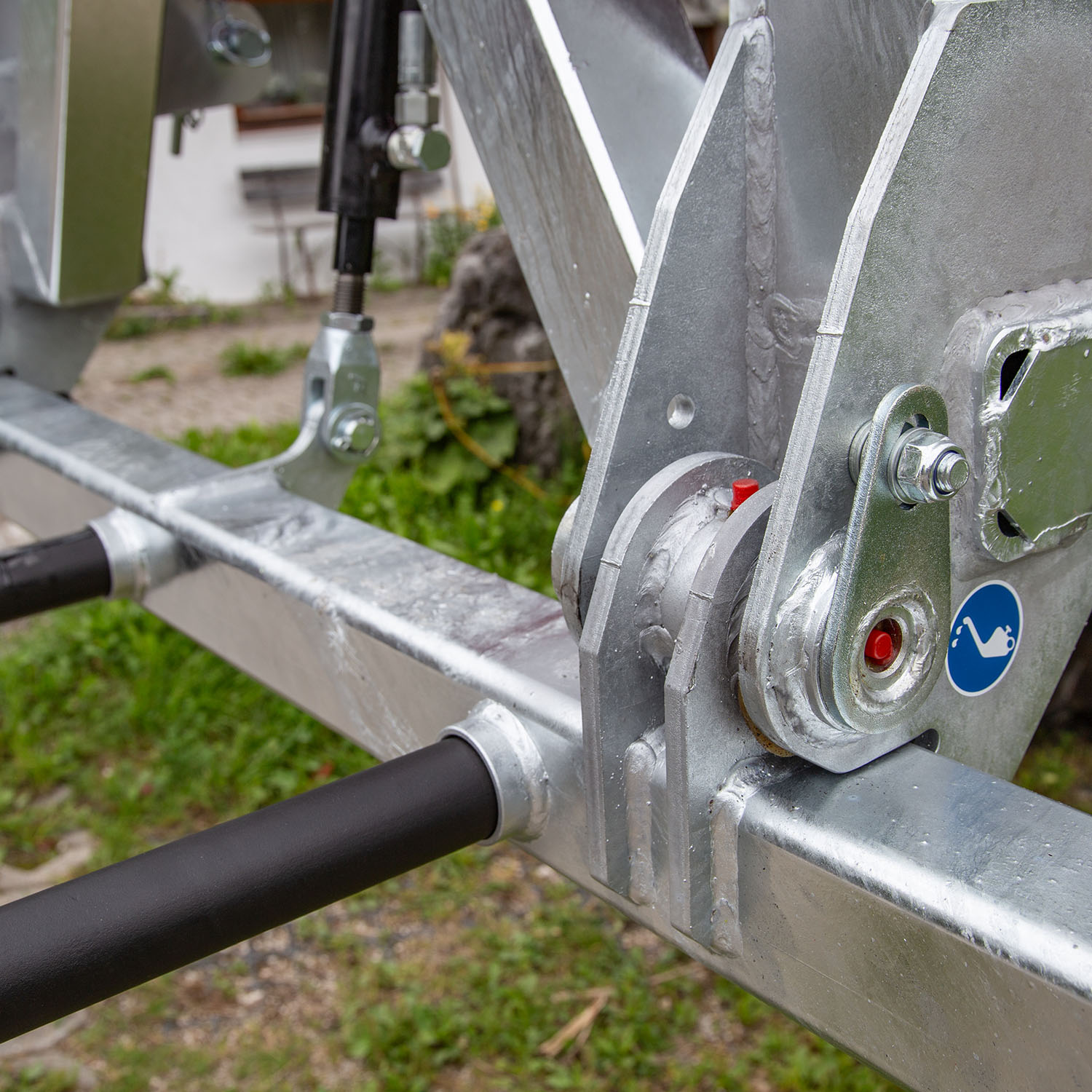 » Porte-dents repliable hydrauliquement vers le haut à env. 90° – pas de protection de transport pour dent nécessaire pour le transport sur route