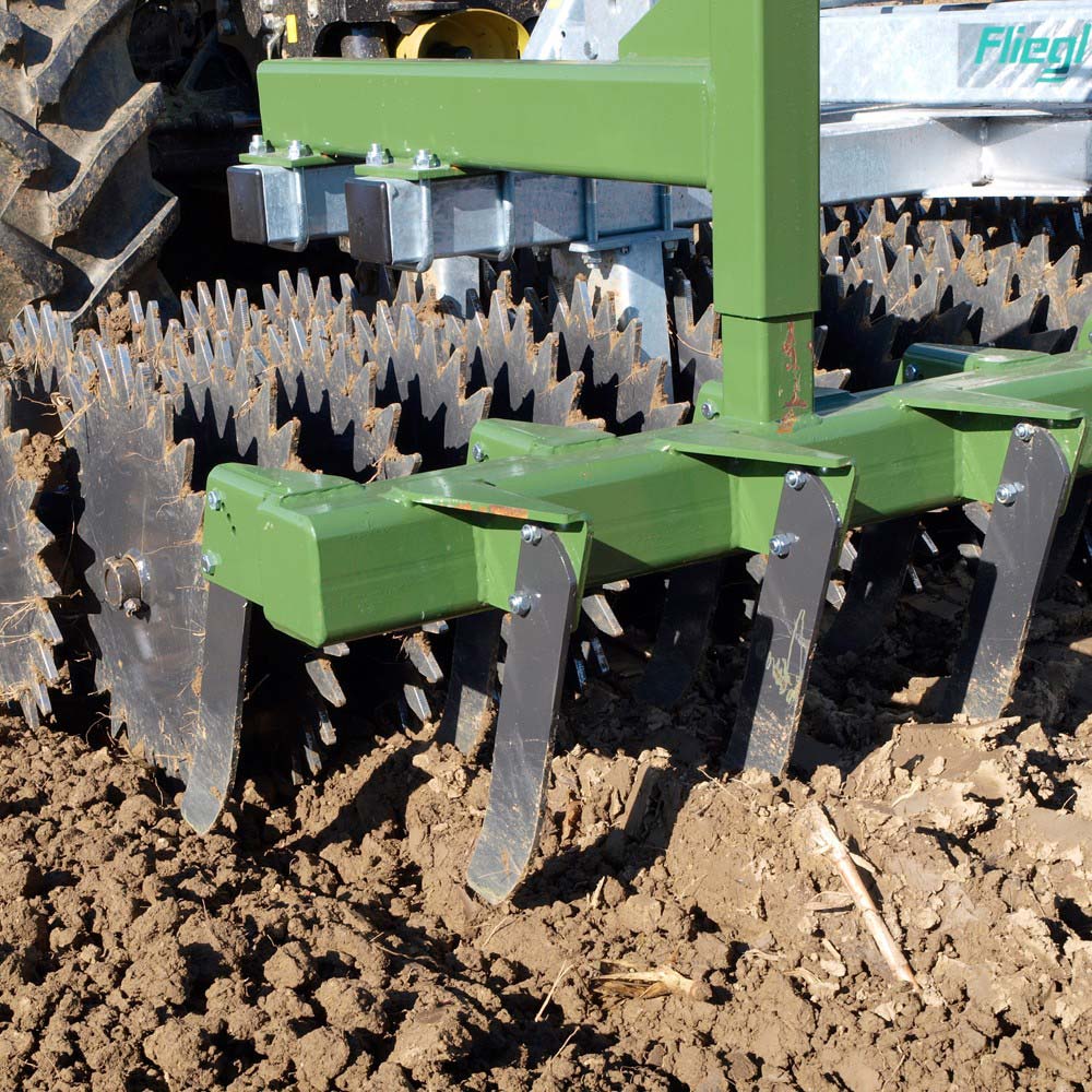 Le scarificateur a une largeur adaptée de 3000 mm et est utilisé en montage avant pour briser les miettes plus grosses.